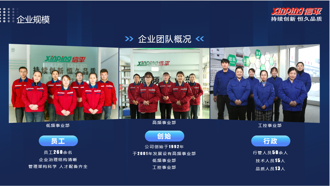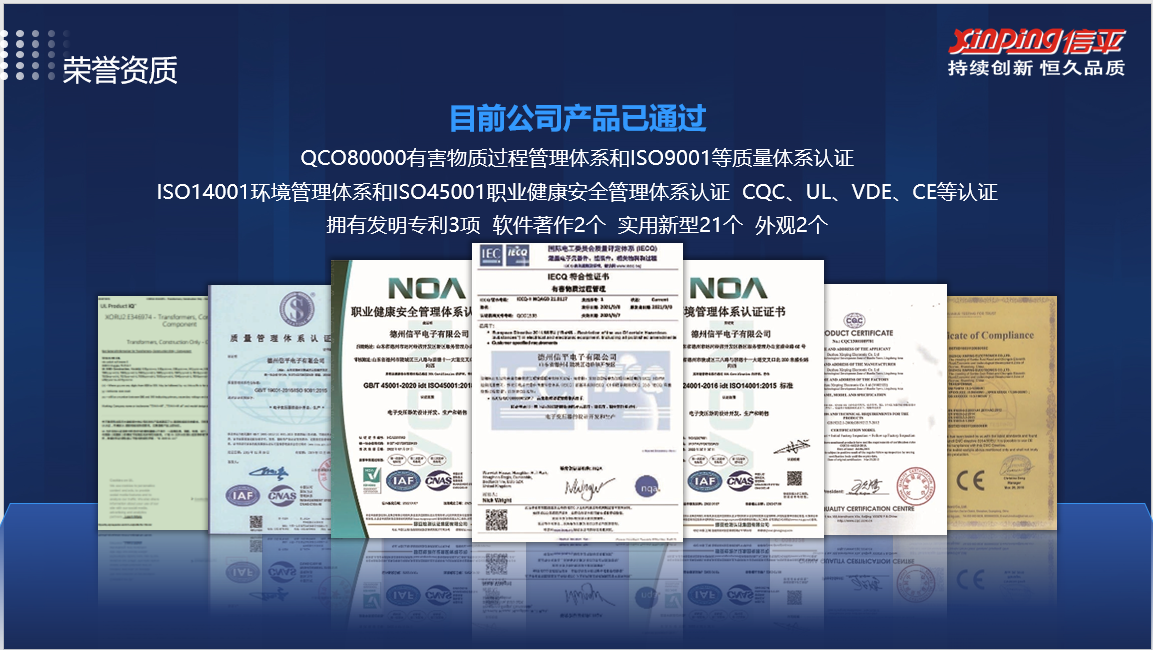 德州信平电子一直追求精益生产的管理理念,一丝不苟的品质要求和不断创新的工匠精神,不断打造符合客户需求的有竞争力的高品质产品和整体解决方案。大力发扬自信自强、追求卓越的信平精神,努力实现“创变压器世界品牌,做全球变压器定制中心”是我们发展的目标。公司愿与本行业有志之士密切合作,共创美好明天。